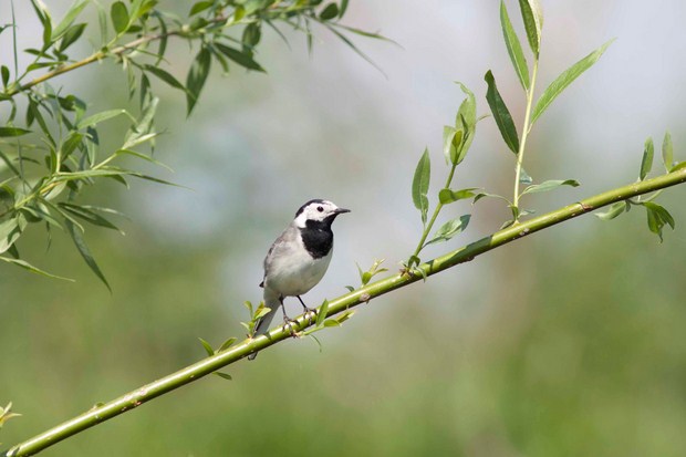 Белая трясогузка, обычный вид в пойме реки