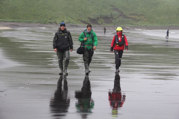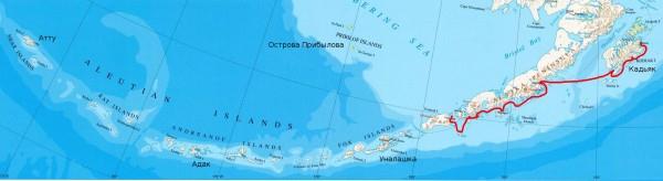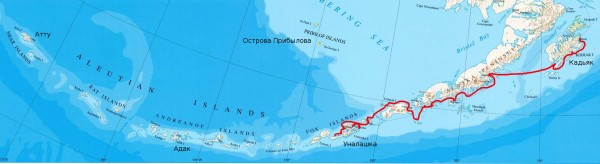 Руководитель экспедиции, Герой России Михаил Георгиевич Малахов передает по спутниковому телефону: «Наш маршрут можно разделить на две неравные части- до острова Уналашка, селения Датч Харбор, и от Датч Харбора до конечной точки маршрута острова Атту. Первая часть небольшая по продолжительности, примерно одна треть, но две трети достопримечательностей или загадок мы должны разгадать на этом маршруте. Вторая половина более продолжительная, но меньше остановок, больше чисто плавания. Основная часть команды уже адаптировалась к морским условиям путешествия, чувствуем себя достаточно комфортно. Хотя погода, с нашей точки зрения, далеко не самая лучшая. Интресно, что температура все время держится 12-13 градусов, море – 7-8 градусов, что для русских путешественников не проблема. И во время остановок мы уже три раза принимали холодные ванны и в Беринговом море, и в Тихом океане.