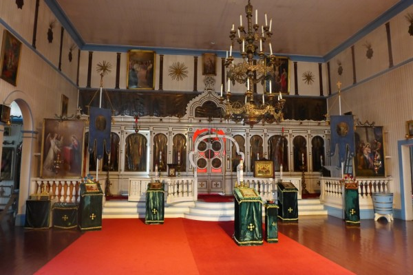 Самое большое впечатление оставило посещение Датч Харбора. Даже по меркам Большой земли Датч Харбор – хороший городок, а уж для Алеутских островов это просто столица. Поразило большое количество сувениров с тематикой Русской Америки – матрешки и другие типично русские вещи, сделанные с большим мастерством. Нашли фигурки медведей, сделанные не в кадьякском стиле, а в типично русском стиле. И даже паззлы – картинки, которые надо самим собирать – здесь на темы русских народных сказок. История Русской Америки здесь не только хорошо помнится, но и хорошо продается. Датч Харбор посещают и туристы, и многочисленные рыбаки, поскольку он – пожалуй, самый крупный из центров рыболовства и краболовства на Алеутских островах. С интересом посетили церковь Вознесения креста Господня. Это, наверное, самая большая церковь из тех, что мы встречали за все пять лет экспедиций на Аляску. Великолепный иконостас, старинные иконы и старые метрические книги начиная с 1871 года. Руки Якова Нецветова, знаменитого священника, мы здесь не обнаружили, как это было в деревне Рашен Мишен, но все равно было интересно наблюдать каллиграфический почерк русских священников, которые вели книгу учета населения в этом месте.Местный священник – человек с очень русским именем Андрей Пшеларов. К сожалению, он отсутствовал во время нашего визита, поэтому мы встретились с одним из людей из своеобразного общественного совета, который поддерживает русскую православную церковь, возглавляемого один из членов парламента этого городка.