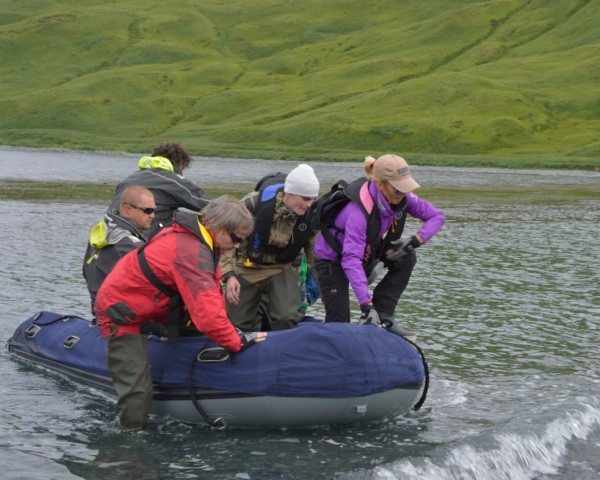 Наши переходы теперь будут более длинными, тем самым мы в большей степени будем подвержены волнам Тихого океана. Но настроение у команды хорошее. Этими днями, 15 августа, был день рождения Алексея Малахова, 29 лет. В пятый раз он празднует день рождения в экспедициях на Аляску – в этот раз – на Алеутские острова.».
