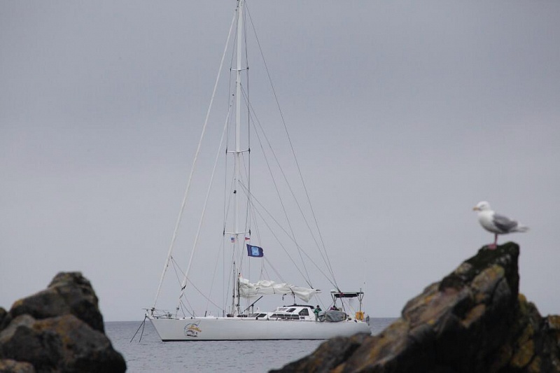 В целом экспедиция проходит достаточно гладко, хотя не было ни одного дня исключительно хорошей погоды. Все дни дожди, ветра, т.е. определенные трудности приходится преодолевать. Но наша яхта SAUVAGE, руководимая известным мореплавателем Дидье Ватрекотом, преодолевает все эти сложности морского плавания. Ну а море щедро платит за настойчивость, проявляемую всеми участниками экспедиции. Каждый день мы с рыбой. Или это лосось, или большая рыба палтус. Поэтому основной наш рацион составляет рыба. В целом обстановка дружная. Через 2-3 дня мы будем в самом крупном поселке на островах – Датч Харборе, но до него будет еще несколько интересных высадок в исторических местах, где жили россияне во времена Русской Америки. »