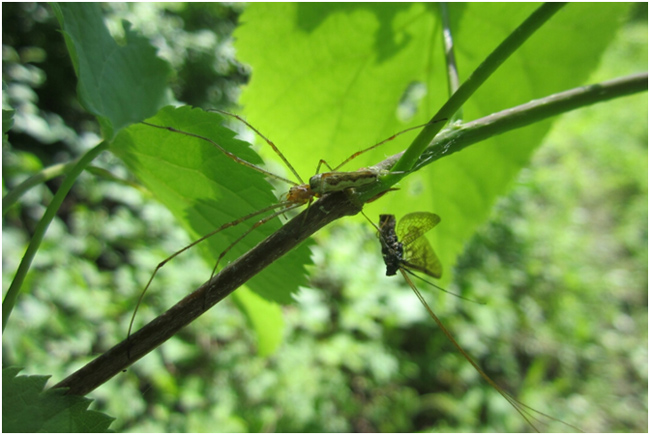Арахнолог (Кузьмин Евгений, студент 5 курса естгеофака УлГПУ) за два дня собал уже около сотни пауков, самый крупный из них (более 2 см) - надвоный обитатель охотник каемчатый.