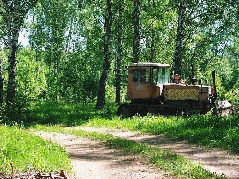 А по дороге заметил брошенный трактор и очень милый лесной прудик, среди плакучих березок...