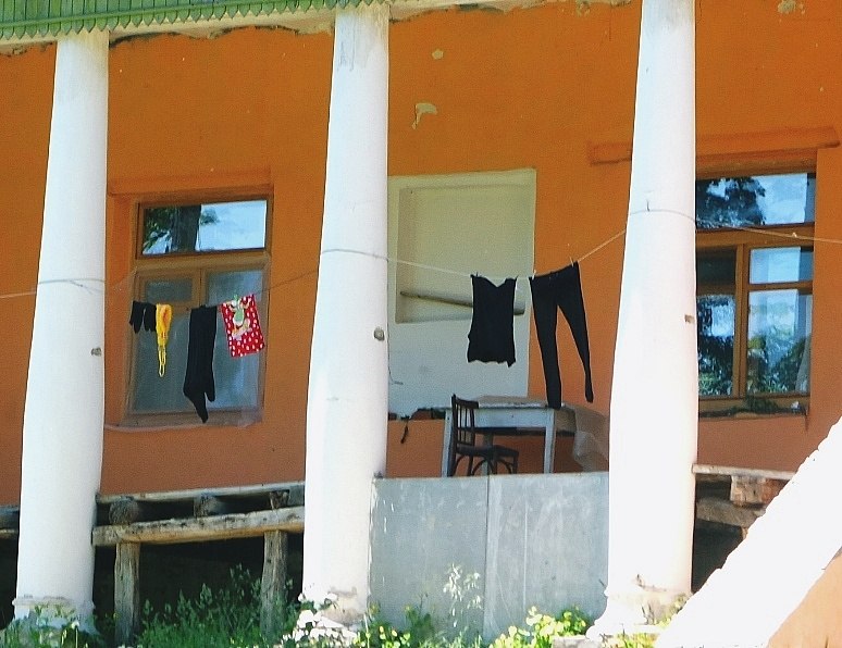Как на 30 лет назад попал. Тенистые аллеи, по которым чинно гуляют лечащиеся, маленькие домики, старинная барская усадьба 18 -го века , между колоннами которой сушатся трусы, памятник Ленину с красными маками у подножия и средство оповещения пожара 21-го века -ШПАЛА, висящая между деревьев !!!!!!!!!