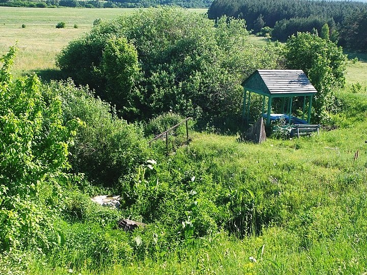 На этот раз повезло, один из местных жителей довольно хорошо описал дорогу, что сильно помогло мне... Но даже с описаниями пришлось пробиваться по застаревшей пахоте, среди травы в капот машины, но пробился... Самое приятное было обнаружить плохонькую, но грунтовую дорогу подъезжающую прямо к источнику с другой