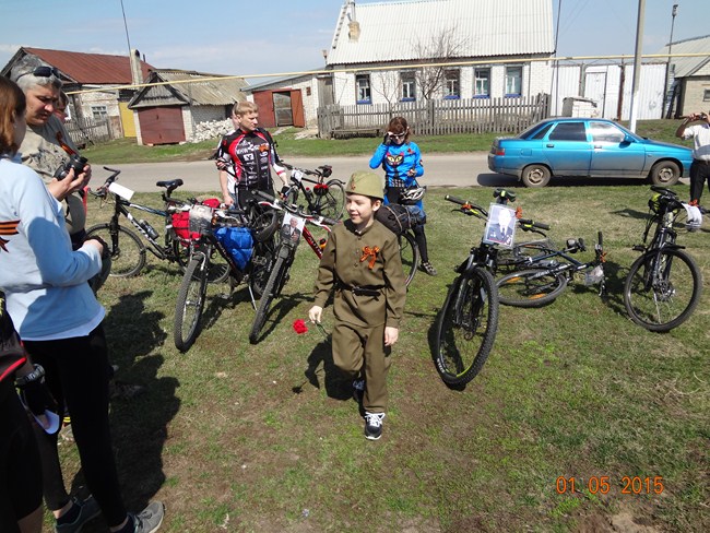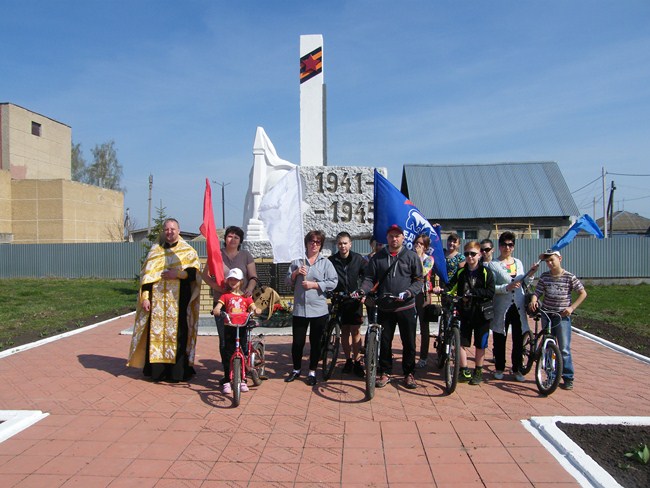 Участники велопробега совместно с РПЦ и школьниками поселений посещали памятники ВОВ и поздравляли ветеранов с Днем Победы.